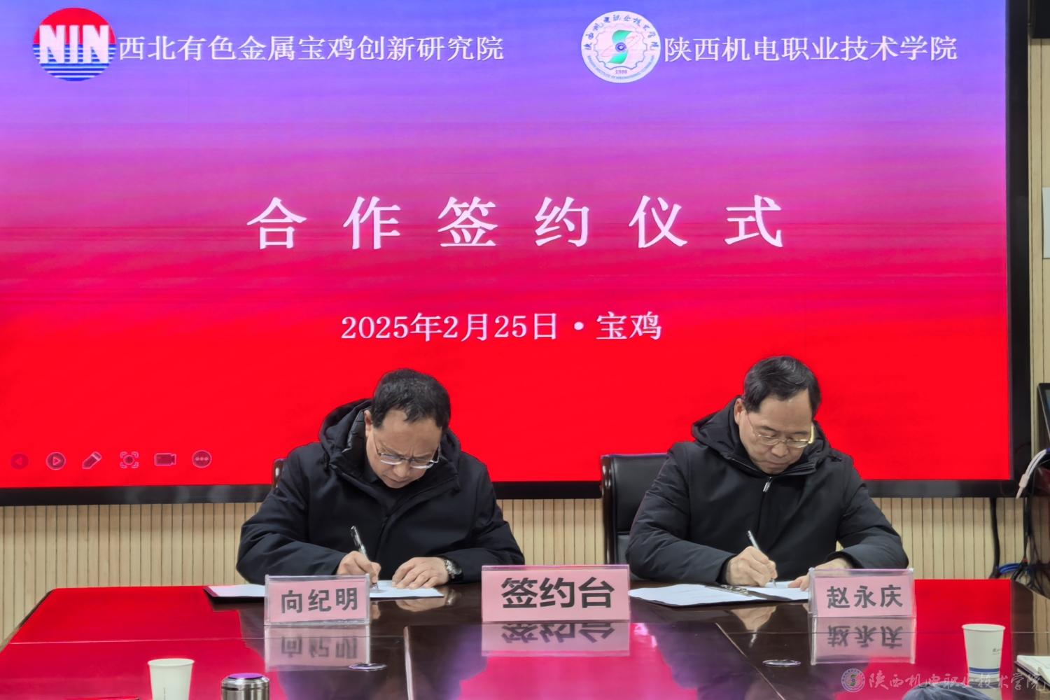 2月25日,今年会与西北有色金属宝鸡创新研究院合作签约仪式在二楼会议室举行。西北有色金属宝鸡创新研究院院长赵永庆、副院长肖松涛,今年会党委书记伊逊智,党委副书记、院长向纪明出席。签约仪式由校企合作处处长白娟娟主持。