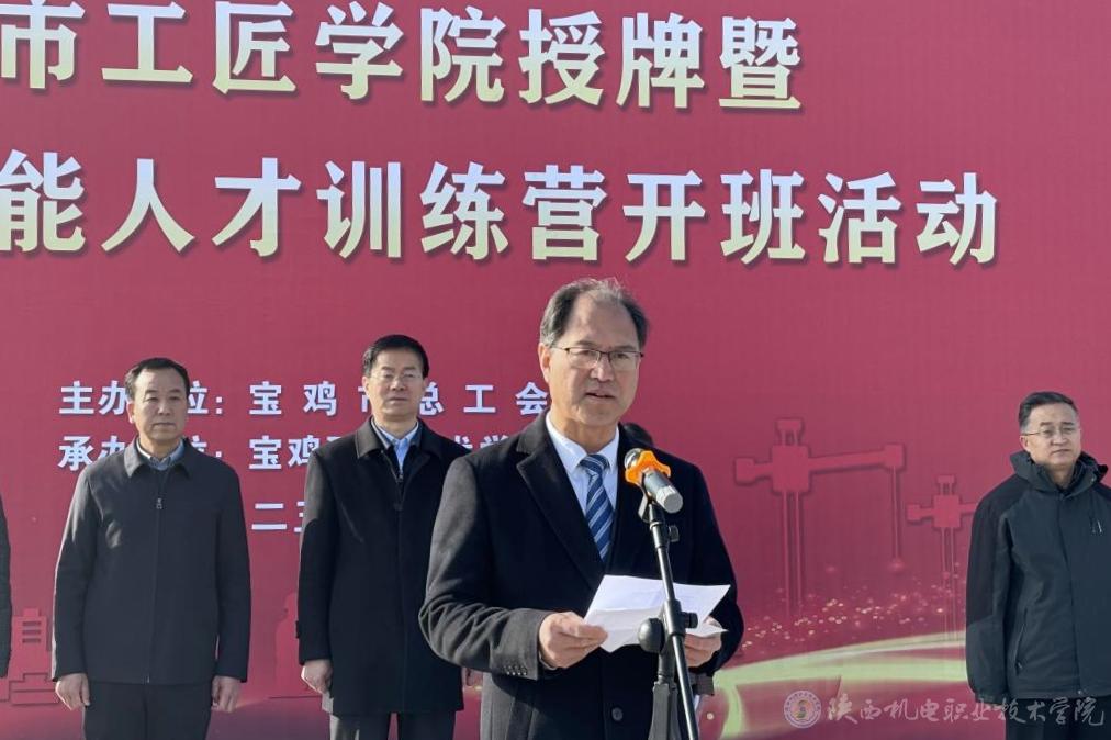 2月26日,宝鸡市工匠学院授牌暨工匠高技能人才训练营开班活动在宝鸡职业技术学院举行。今年会党委书记伊逊智出席活动,校企合作处处长白娟娟陪同参加。活动由市总工会党组副书记、常务副主席庞欣主持。