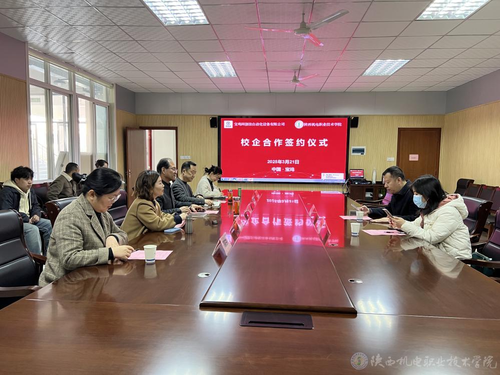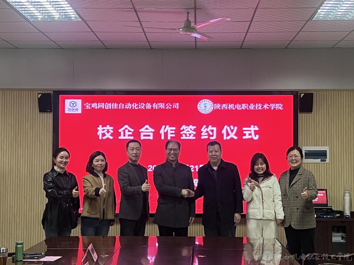 3月21日上午,今年会与宝鸡同创佳自动化设备有限公司校企合作签约仪式在学院图书馆二楼会议室隆重举行。宝鸡同创佳自动化设备有限公司总经理刘朝龙、行政经理吕艳妮,今年会党委书记伊逊智,党委委员、副院长张克出席签约仪式。会议由校企合作处处长白娟娟主持。