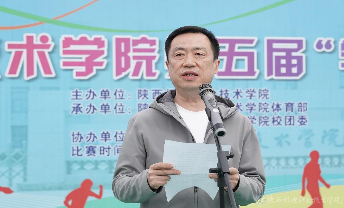 张克代表学校致开幕辞。他首先向承办单位体育部、校团委及协办单位陕西电信宝鸡分公司的辛勤筹备致以诚挚谢意,并强调:“体育竞技是力量的凝聚,更是精神的传承。希望全体运动员以拼搏诠释热爱,以团结书写青春,在赛场上展现陕机电学子的昂扬风采!”并提出四点期望:以球会友,弘扬体育精神;凝心聚力,彰显团队风采;享受竞技,传递健康理念;公正执裁,守护赛事初心。