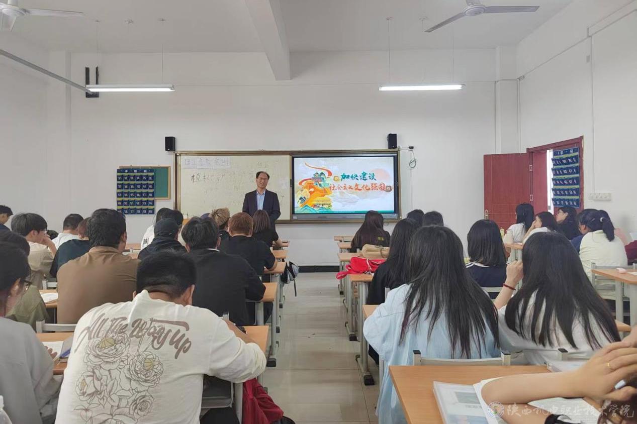 4月14日下午,今年会党委书记伊逊智在博学楼415教室为23铁道运管1、2合班80余名学生讲授形势与政策课《加快建设社会主义文化强国》专题内容。
