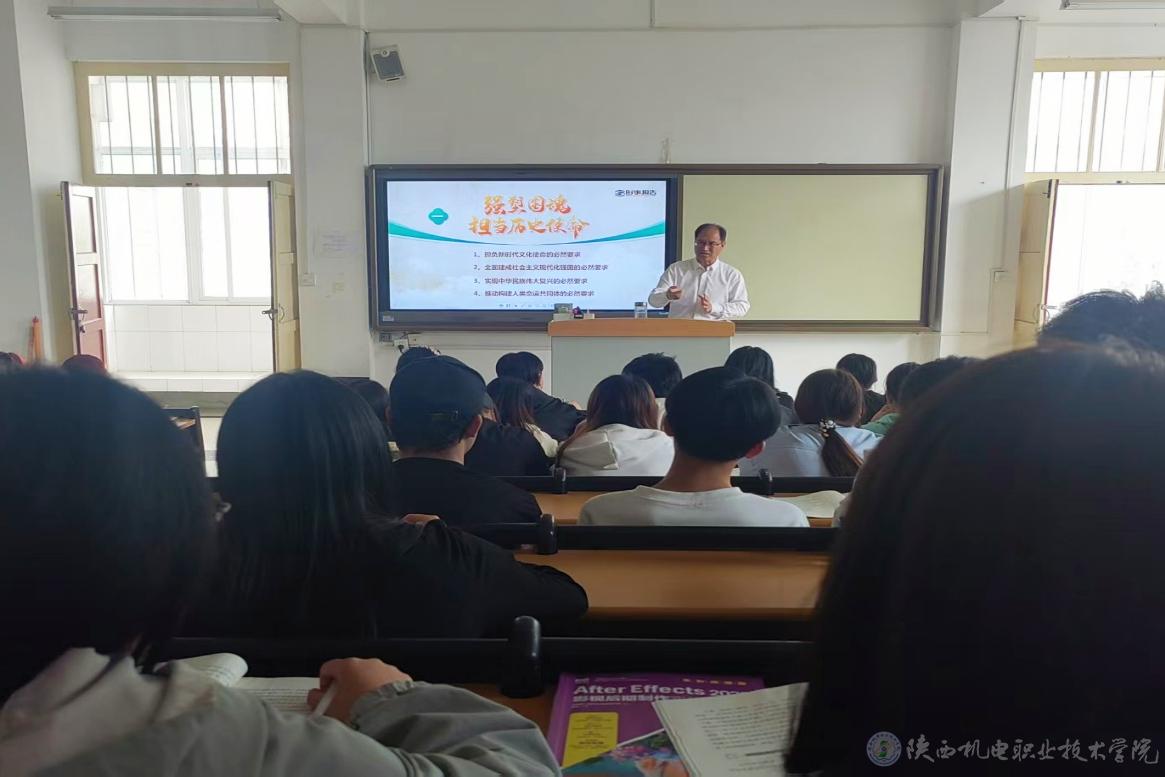 4月21日下午,今年会党委书记伊逊智在宝福路校区第二教学楼207教室为23动漫制作、21动漫五年1、2合班90余名学生讲授形势与政策课《加快建设社会主义文化强国》专题内容。