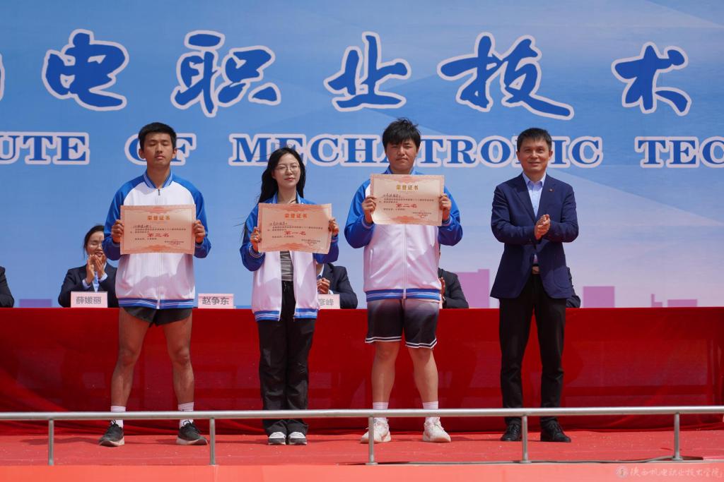 闭幕式上,径赛裁判长薛媛丽(蟠龙校区),田赛裁判长杨鹏(宝福路校区)宣读团体比赛成绩、团体名次、优秀组织奖、体育道德风尚奖等。参加闭幕式的领导为获奖个人和集体进行了颁奖。