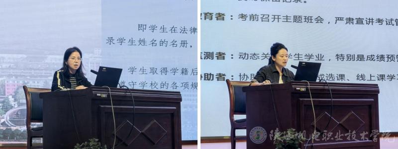 教务处综合科科长高玲玲、教务科科长仇瑶分别就学籍管理、考试流程等工作作了说明。