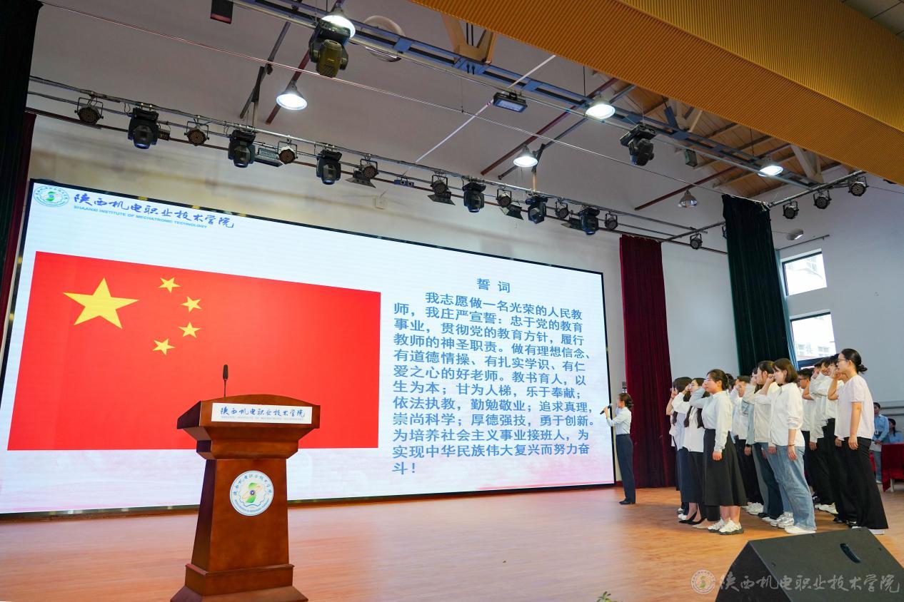 陕西省优秀教师薛媛丽带领2025年新入职教师宣誓。