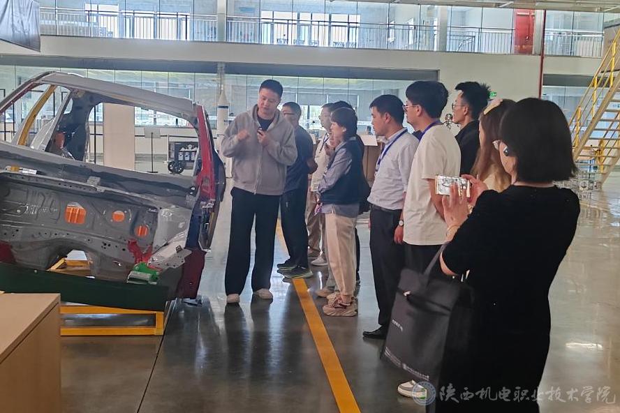 下午,国培班学员乘车前往宝鸡吉利汽车公司,参观全自动车身装配车间、总装车间及吉利企业大学,了解工业机器人在企业生产中的应用。
