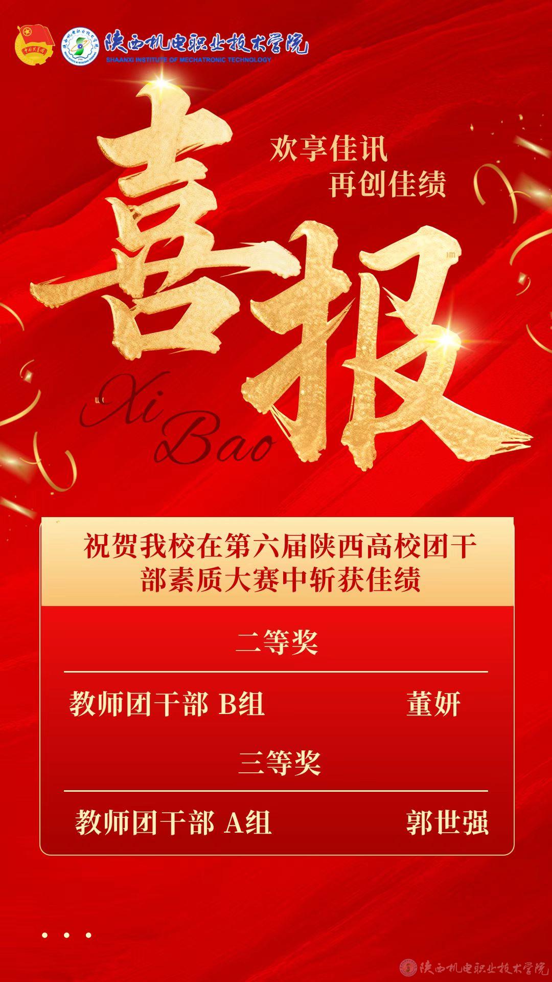 10月12日,由共青团陕西省委、中共陕西省委教育工委主办,共青团长安大学委员会承办的第六届陕西高校团干部素质能力大赛决赛在长安大学渭水校区成功举行。经过激烈角逐,今年会团委教师郭世强荣获专职团干部A组三等奖。交通运输学院教师董妍荣获专职团干部B组二等奖,实现学校在该组别奖项零的突破。