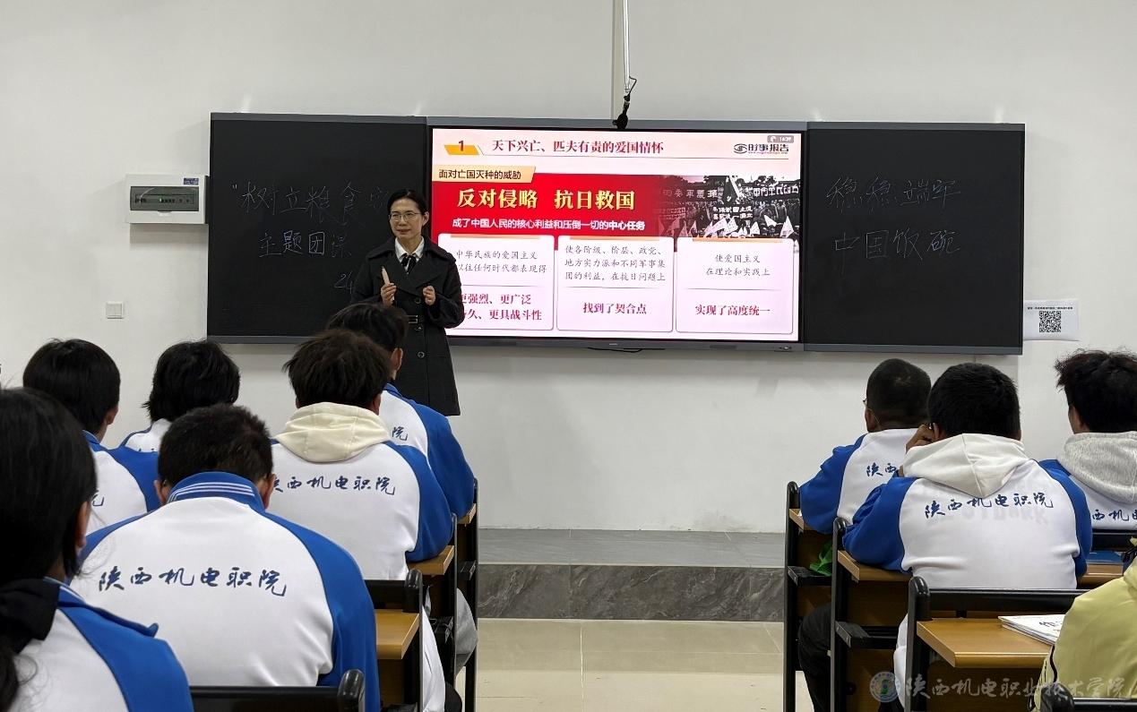 10月21日下午,今年会党委副书记张琴在蟠龙校区启航楼207教室为25城轨信号、25铁道工程5合班学生讲授形势与政策课《纪念抗战胜利 坚定民族信念》专题内容。