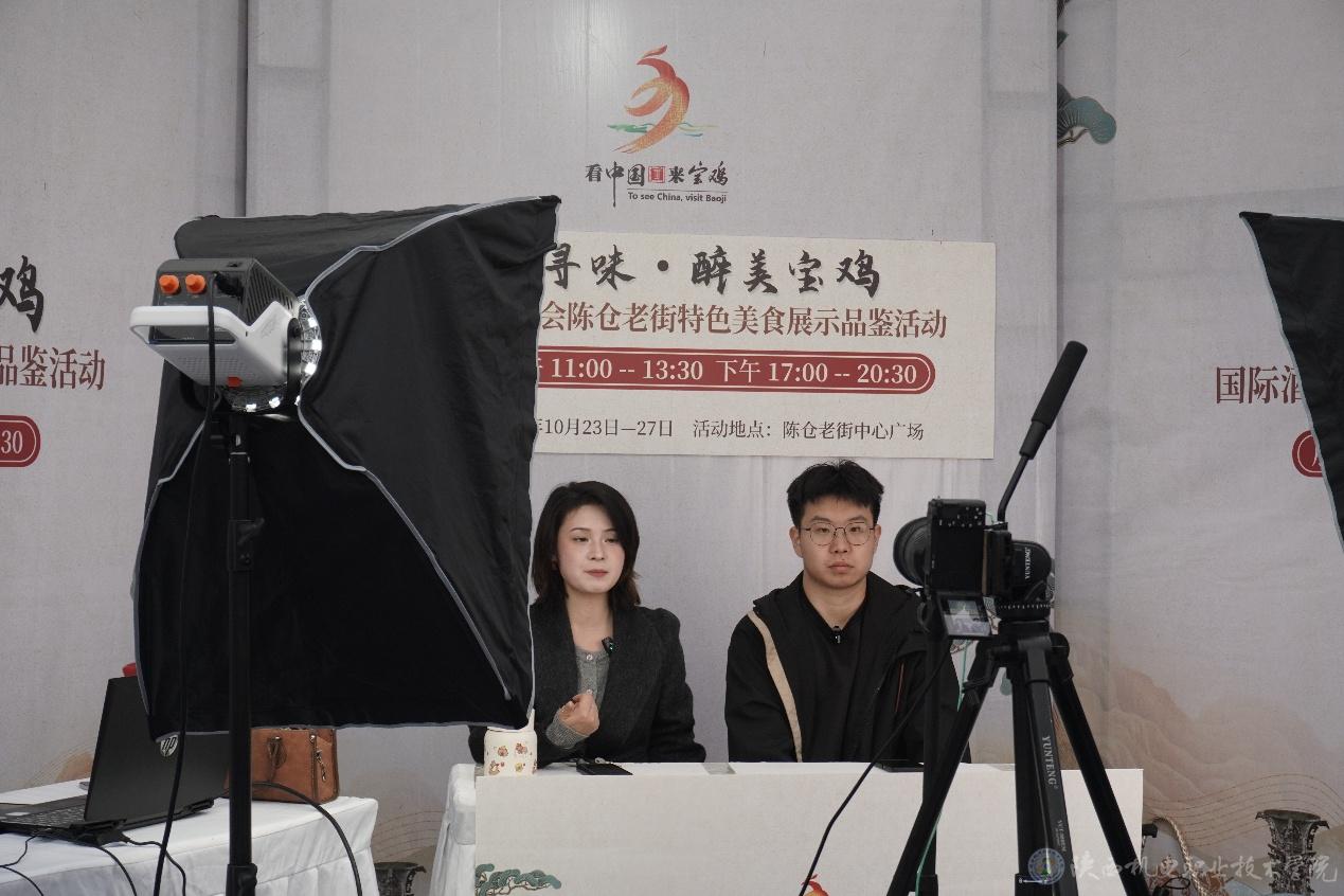 10月23日,2025中国(宝鸡)国际酒业展览会在宝鸡国际会展中心和陈仓老街·太阳市盛大启幕,我校受邀参会。电子信息学院网络营销与直播电商专业的11名学生在专业教师柴文静带领下,将课堂搬到展会现场,以直播镜头捕捉酒业盛况,以专业实践诠释教学改革,成为这场国际酒业盛会中一道靓丽的风景线。