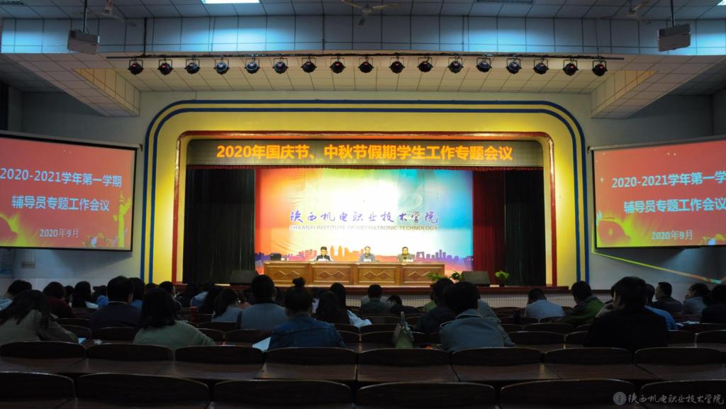 为做好2020年“国庆节、中秋节”期间学生教育管理服务工作,学生处于9月27日在大礼堂组织召开辅导员专题工作会议,学生处处长王建斌、学生处副处长常小凯及全体辅导员参加,会议由团委书记杨鹏主持。