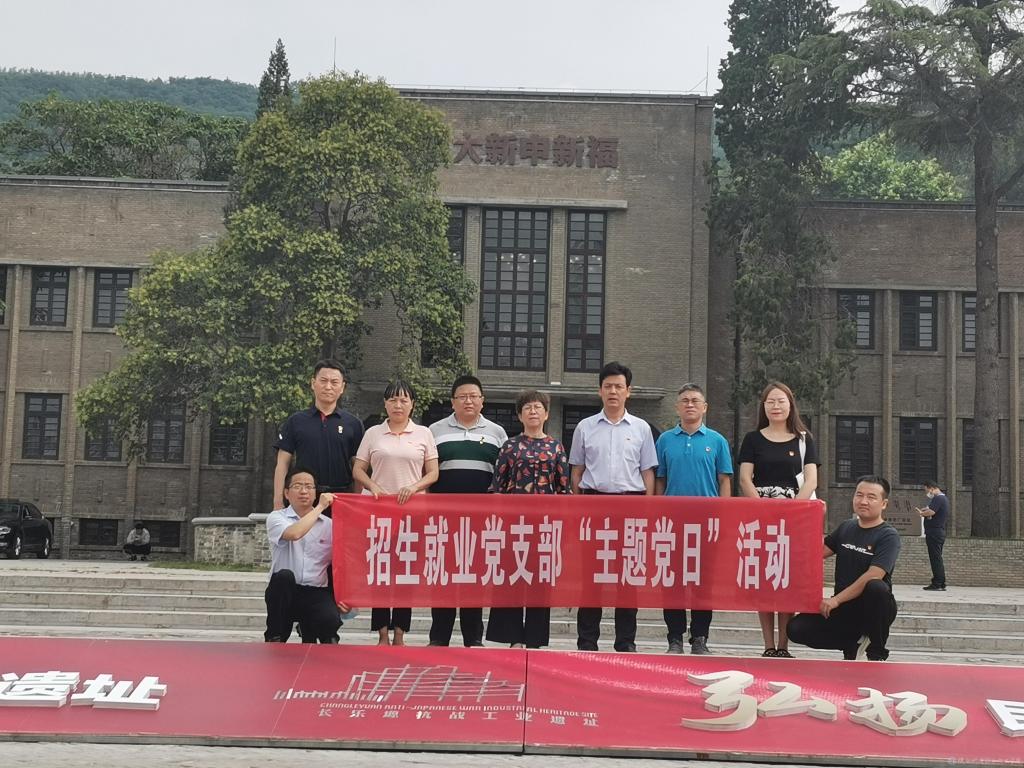 为深入学习贯彻习近平总书记在党史学习教育动员大会上的重要讲话精神,落实学校“开展特色活动”的学习安排,迎接中国共产党成立100周年,6月10日,招生就业党支部组织全体党员赴长乐塬抗战工业遗址公园开展主题党日活动。