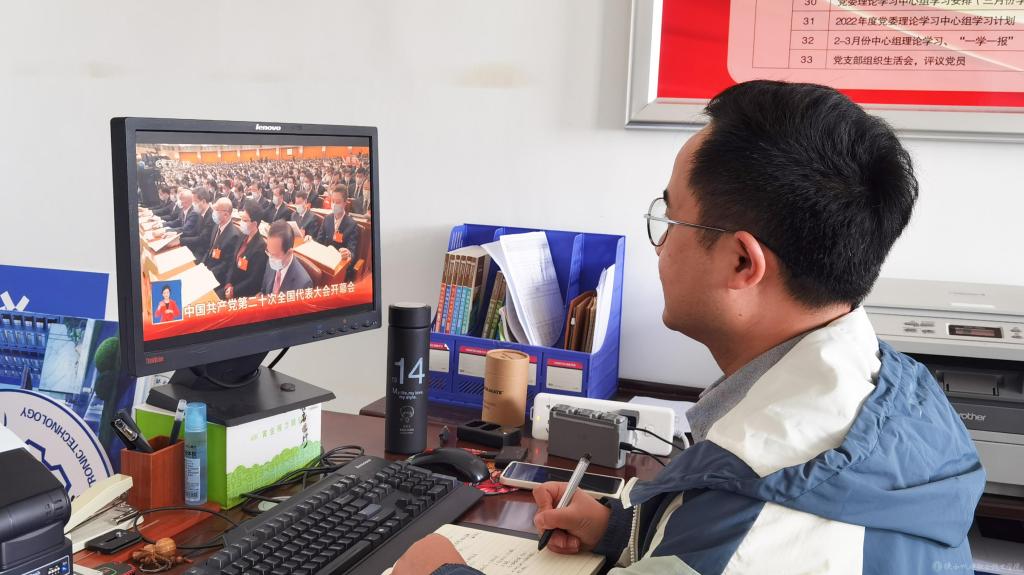 支部党员在工作岗位上收看中国共产党第二十次全国代表大会开幕会
