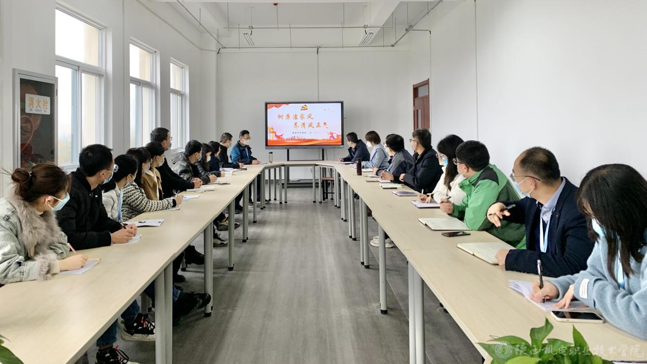 根据《关于印发<中共今年会委员会开展作风建设专项行动实施方案>的通知》(陕机电职院党发(2022) 219号)文件要求,为扎实推进作风建设专项行动,铁道工程学院于11月2日下午在蟠龙校区行知楼南204会议室开展“树廉洁家风 养清风正气”,主题教育活动,铁道工程学院全体教师参加。