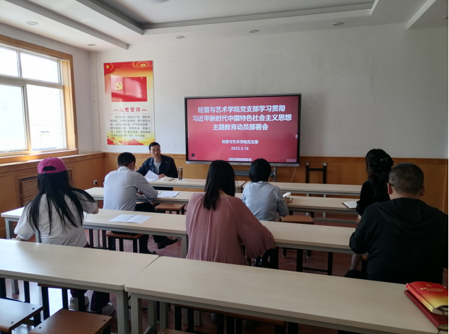 2023年5月16日经管与艺术学院党支部在经管建筑楼二楼会议室开展集中学习暨学习贯彻习近平新时代中国特色社会主义思想主题教育动员部署会。会议由党支部书记孟发军主持,支部全体党员参会。