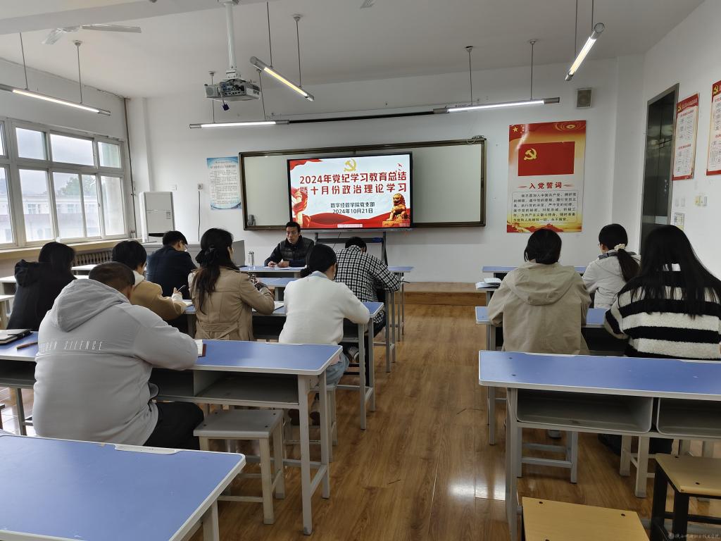 10月21日下午,数字经管学院党支部在宝福路校区电子信息大楼二楼会议室召开党纪学习教育总结暨十月份政治理论集中学习会。会议由党支部书记孟发军主持,支部全体党员参会。