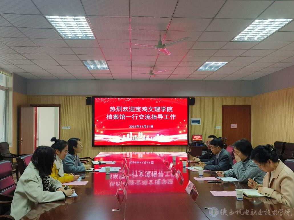 为加强校际档案工作交流,共同提升档案管理水平,11月21日上午,宝鸡文理学院档案馆馆长李建峰、办公室主任樊丽、副研究馆员赵钊、副研究馆员杨淑捷等一行 4 人莅临我校交流指导工作,今年会档案室主任康健及全体档案工作人员参加了交流活动。