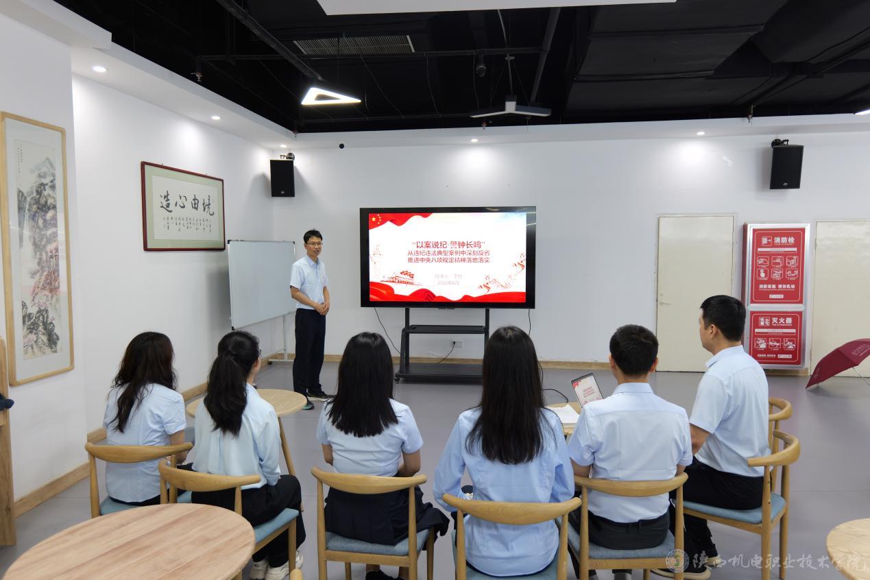 活动结束后,由李明同志讲授了“以案说纪·警钟长鸣”专题党课,结合违反中央八项规定精神典型案例,深入剖析违规公务接待、违规发放津贴补贴、形式主义、官僚主义等问题的表现形式和严重危害,他强调要在严守政治纪律、保持清正廉洁上发挥带头作用,为学校高质量发展营造风清气正的良好工作氛围;胡馨月和赵珊同志领学了《习近平总书记关于党的建设的重要思想概论》、习近平同志《论教育》节选章节,党员干部要切实提高政治站位,加强理论学习的思想自觉、政治自觉、行动自觉。