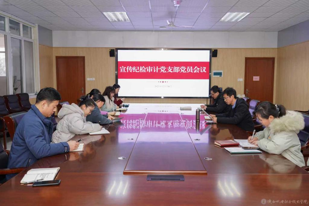12月30日上午,宣传纪检审计党支部在蟠龙校区图书馆二楼会议室召开党员大会,深入学习贯彻党的二十届四中全会精神,推进党纪学习教育常态化长效化。会议由党支部书记李明主持,支部全体党员参加。